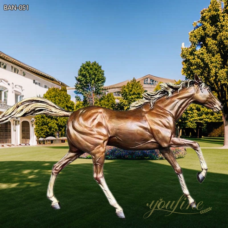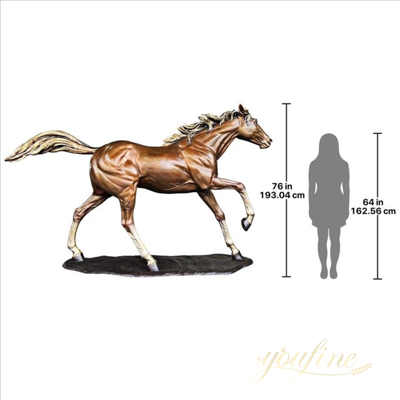 At proportions of 6 ft long by 5 ft tall, this bronze galloping horse makes a bold statement. The expert artisans at YouFine Sculpture Factory sculpt each muscular detail with meticulous care, from the strong slope of the shoulders to the rounded shape of the hooves. No nuance is overlooked, right down to the veins, whorls of the mane, and tension in the body as the horse surges forward. This commitment to realism brings this sculpture to vivid, three-dimensional life.
