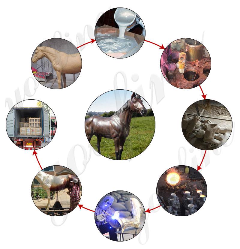 For large bronze horse statues, a clay mold is first made in a 1:1 ratio. After the clay mold is made, for complex shapes, we also embellish the mold with silicone. During the casting process, we use the traditional lost wax method, which is a precision casting method used for metal products such as bronze. In addition, our master has over 30 years of experience in bronze statue making, so any complex design is not a problem for our master. In order to keep up with the pace of society, we are constantly innovating and creating new ideas and techniques. We have created many beautiful statues that are loved by many customers both at home and abroad.