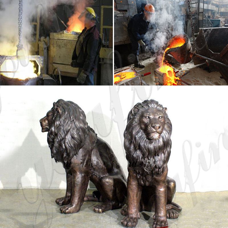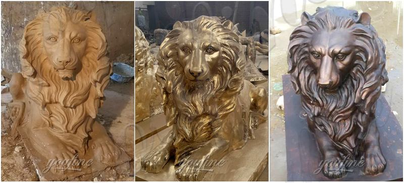 All of our bronze lion statues are made from 80% raw bronze and 20% other metal materials. Because the 100% pure bronze material is relatively soft, it cannot be made into a hard sculpture. Therefore, when making bronze sculptures, we have to add other metal materials. In addition, all of our bronze sculptures are between 4-6mm thick, ensuring the quality and hardness of the bronze sculptures for outdoor use.