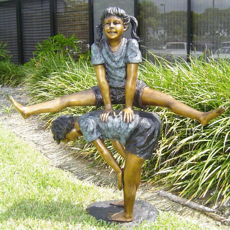 The bronze kid sculpture depicting two children engaged in a delightful game of leapfrog. Learn about our expert craftsmanship, customization options, and decades of experience creating stunning artworks for public spaces.