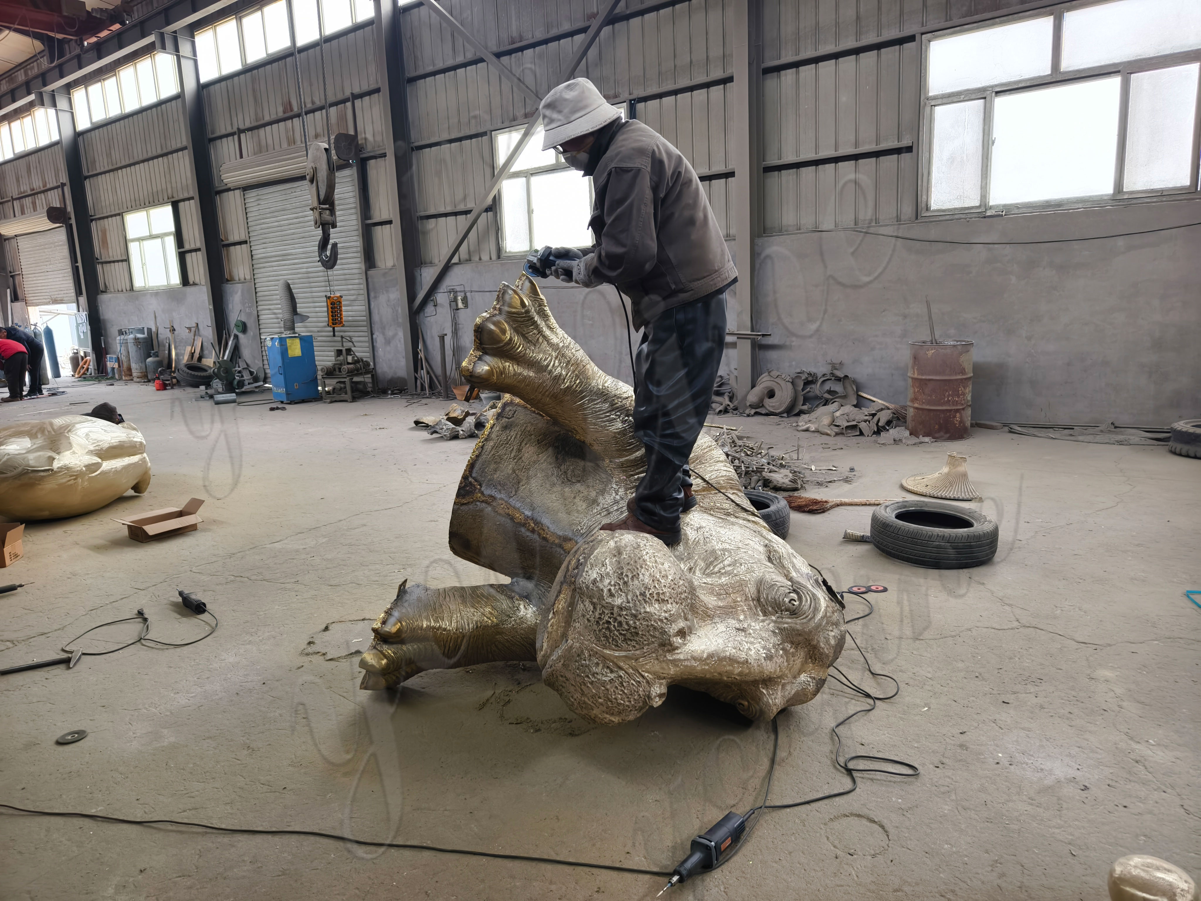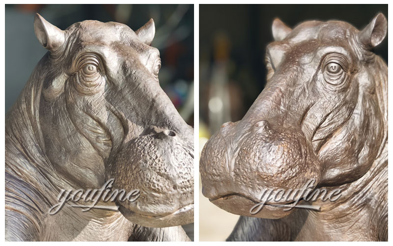 The bronze hippo statue is cast by YouFine’s superb artists. Our artists have rich experience in animal casting. They study the habits of animals all year round in order to cast more realistic animals. It turns out that they did it. The appearance of this bronze hippo is very lifelike.