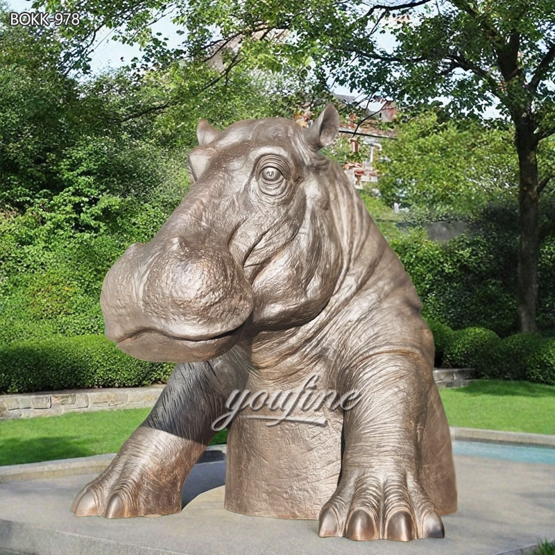 This hippo statue for sale in YouFine boldly breaks through the traditional modeling and only shows the front part of the hippo. It seems that the hippo is struggling to emerge from the mysterious underground world and enter the reality in a humorous and powerful manner.